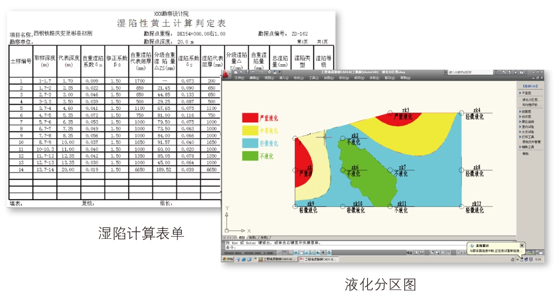1. 计算评价包括地基基础沉降计算、单桩承载力计算、桩沉降计算、黄土湿陷计算、桩端阻侧阻计算、膨胀性(土)评价、液化判定、承载力计算、腐蚀性评价、岩石稳定性评价、岩土均匀性评价、场地类别判断等功能,直接生成计算表单,并将计算结果入库。液化判断后可生成液化分区图。