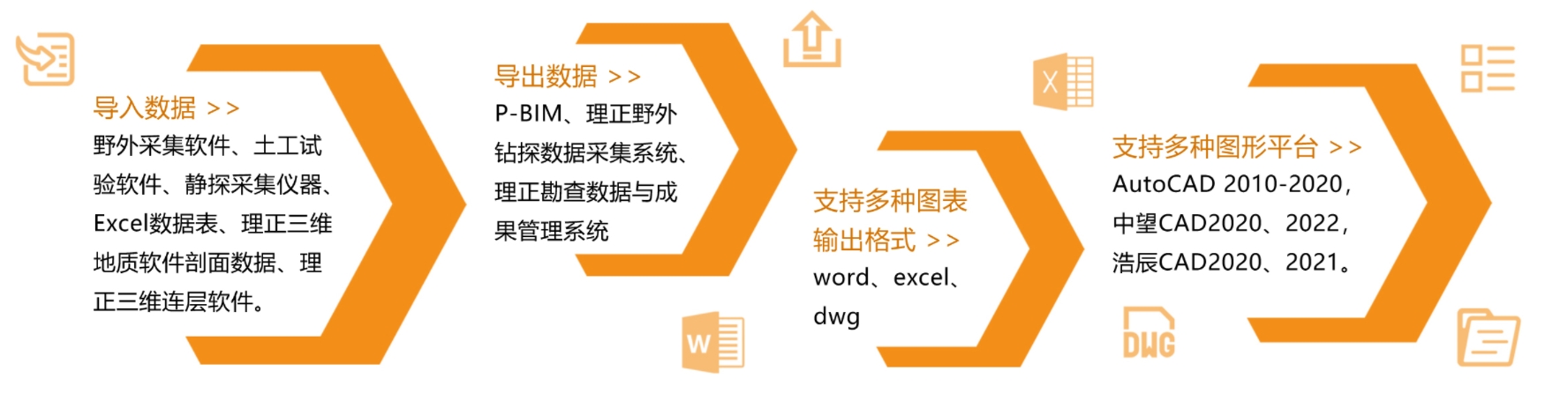 1. 导入数据:理正三维地质软件剖面数据、理正三维连层软件、土工试验软件、野外采集软件、静探采集仪器、Excel数据表