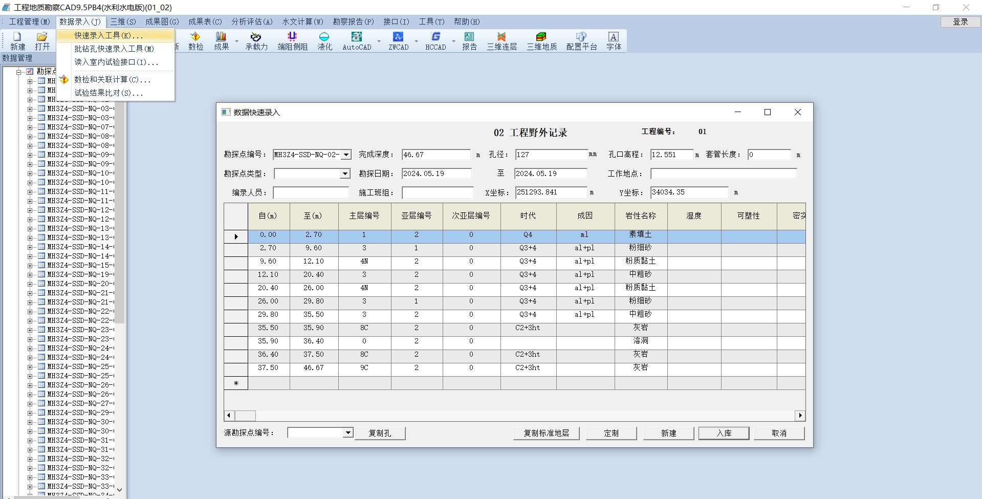 ■提供钻孔快速录入工具,把野外采集记录中的地层描述、水位、取样、标贯、动探等信息一次性导入勘察软件。不仅提高了用户的手工录入,还确保了数据的准确性和完整性。