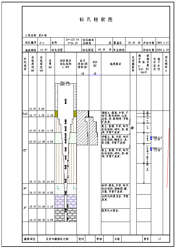 ■钻孔柱状图根据《水利水电工程制图标准》和《水力发电工程CAD制图技术规定》规定的尺寸编制的,钻孔柱状图的样式、表列除按规程规定外还可以任意选择和组合,并且可以自动绘制电视摄影、渗透系数、透水率等。