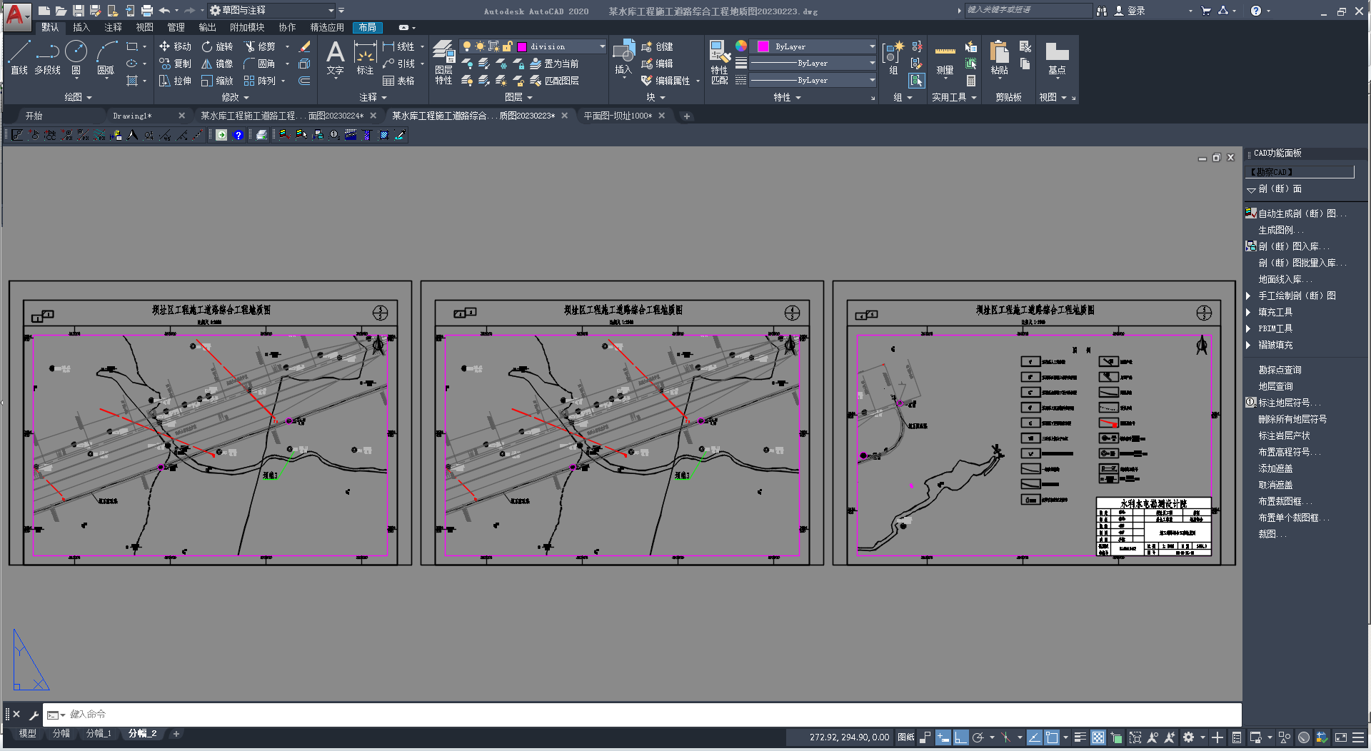 ■可在平面图、剖面图批量布置裁图图框,设置打印比例、图签,在布局空间自动生成分幅图纸,同时自动添加坐标网、分幅编号。剖面图根据布置图框范围智能生成对应范围的高程标尺,并且提供了高效的批量打印工具和数字签名功能,解决工程师出图常遇到难点问题,极大提高工程师出图效率。