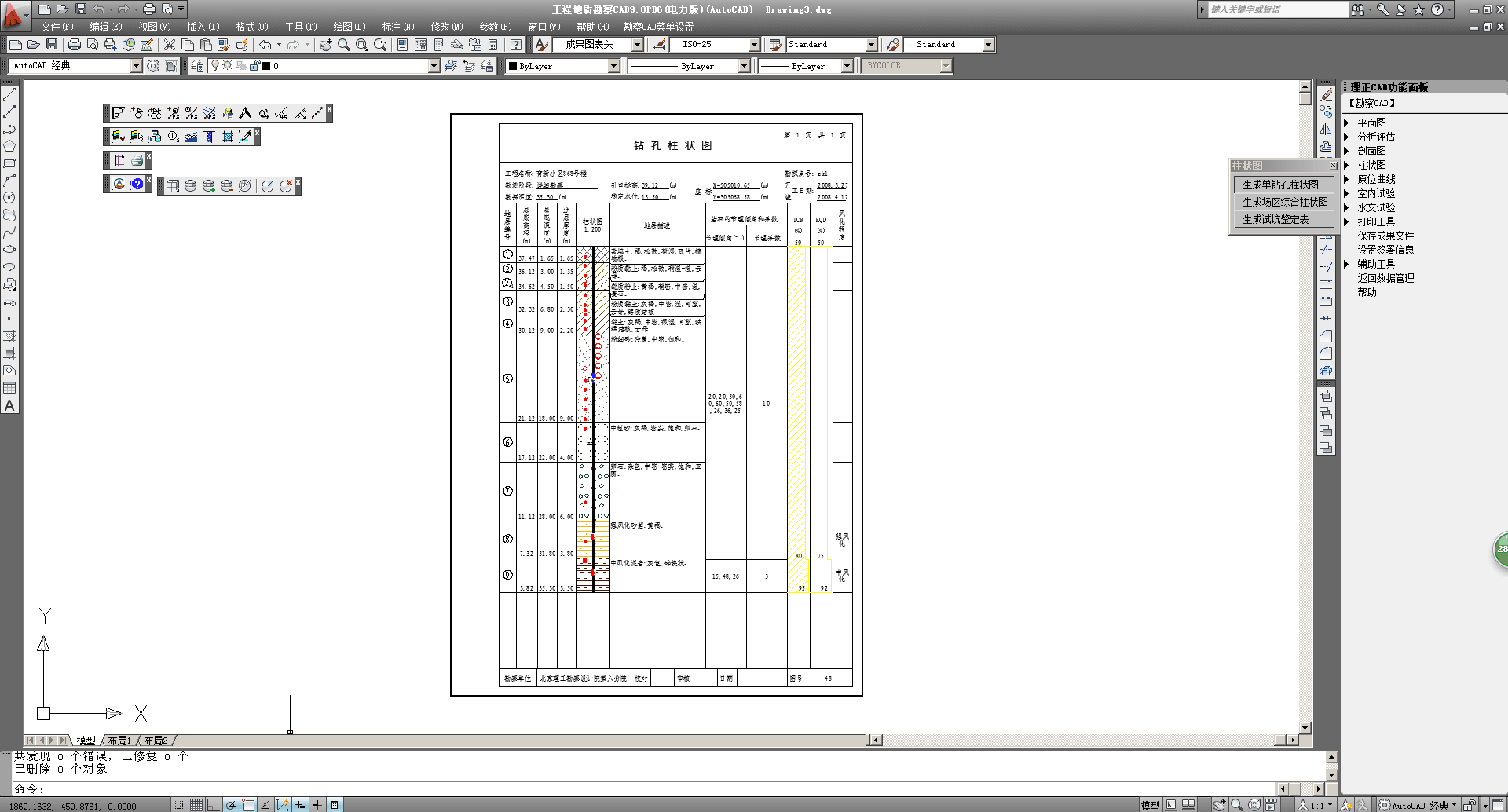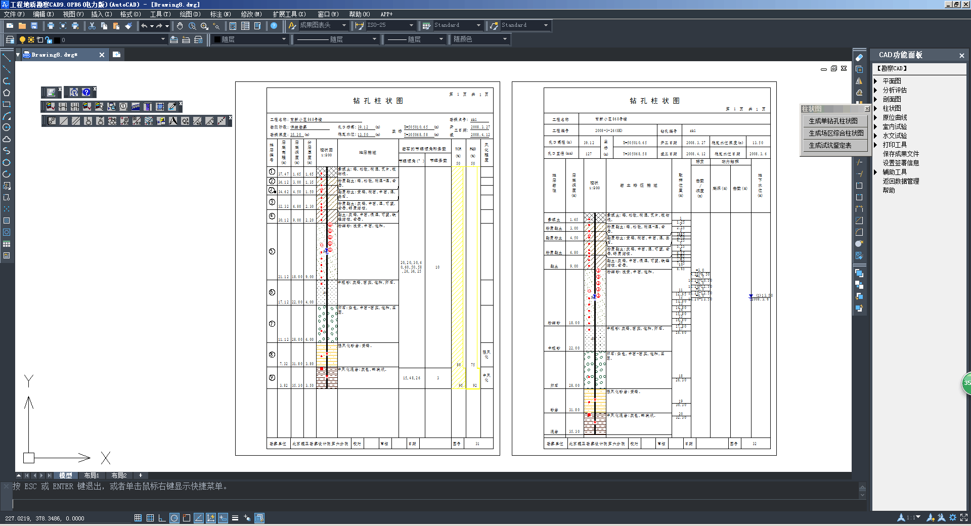 ■9.可批量生成土层钻孔柱状图、岩层钻孔柱状图、动探柱状图、静探柱状图、单孔地质柱状图、试坑鉴定表;工程地质综合柱状图,支持a3双页出图
