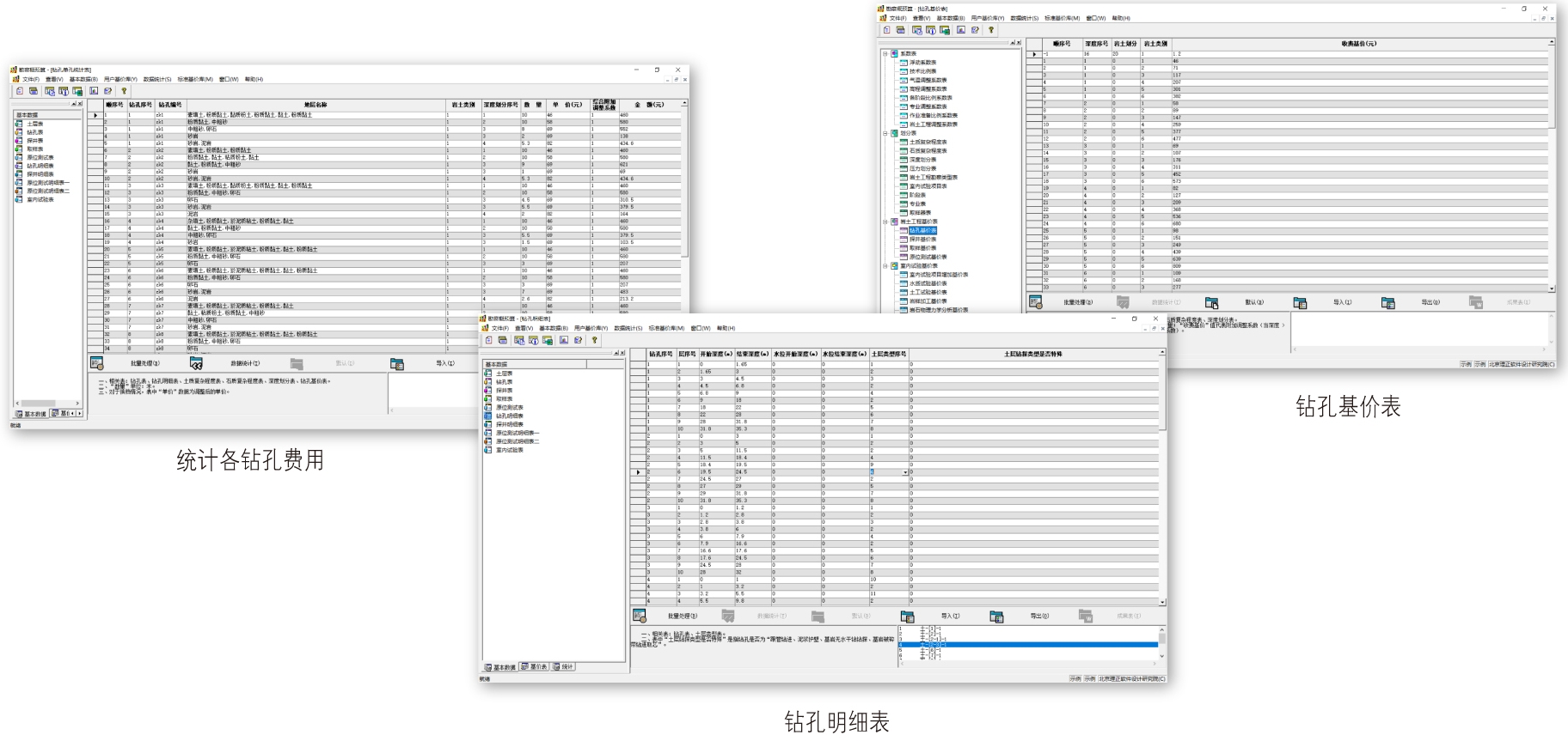 ■完成“岩土工程勘探”和“室内试验”的工作量统计及概预算计算。可将统计计算结果以Excel表格的形式输出,并生成Word文件格式的勘察概预算报告书;