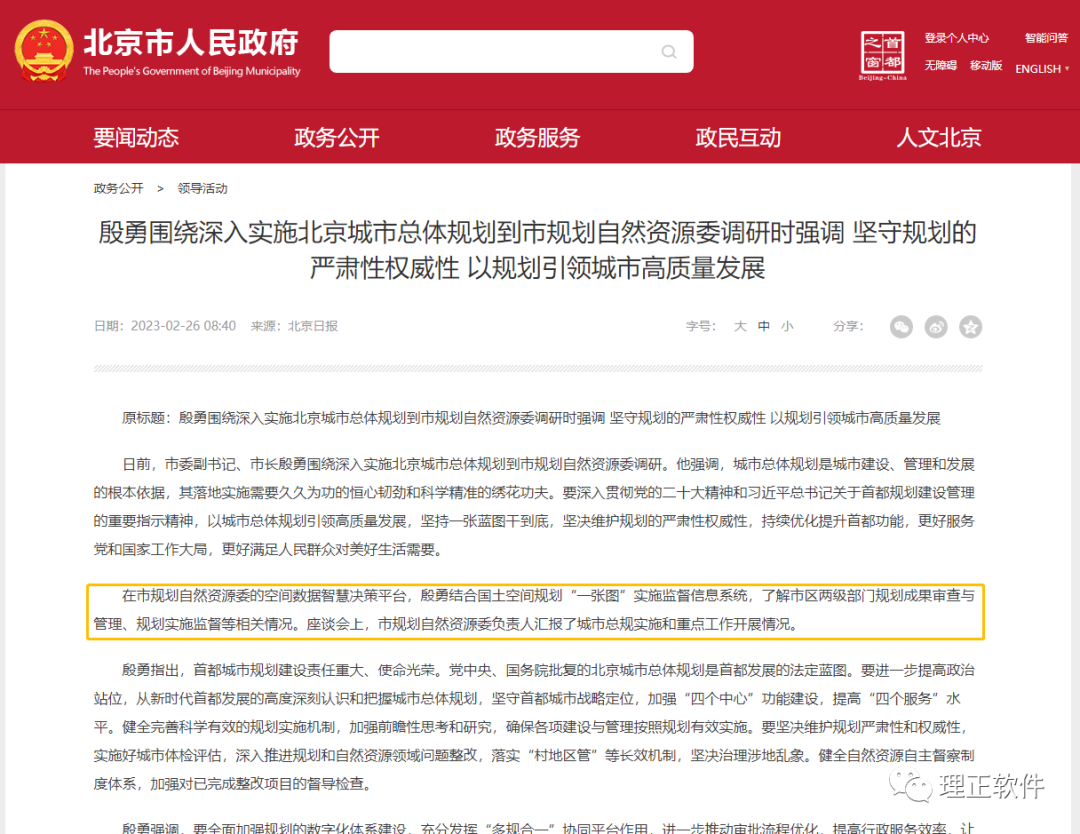 北京市国土空间“一张图” 实施监督系统,由北京城市规划设计研究院与北京理正人信息技术有限公司共同研发打造,
