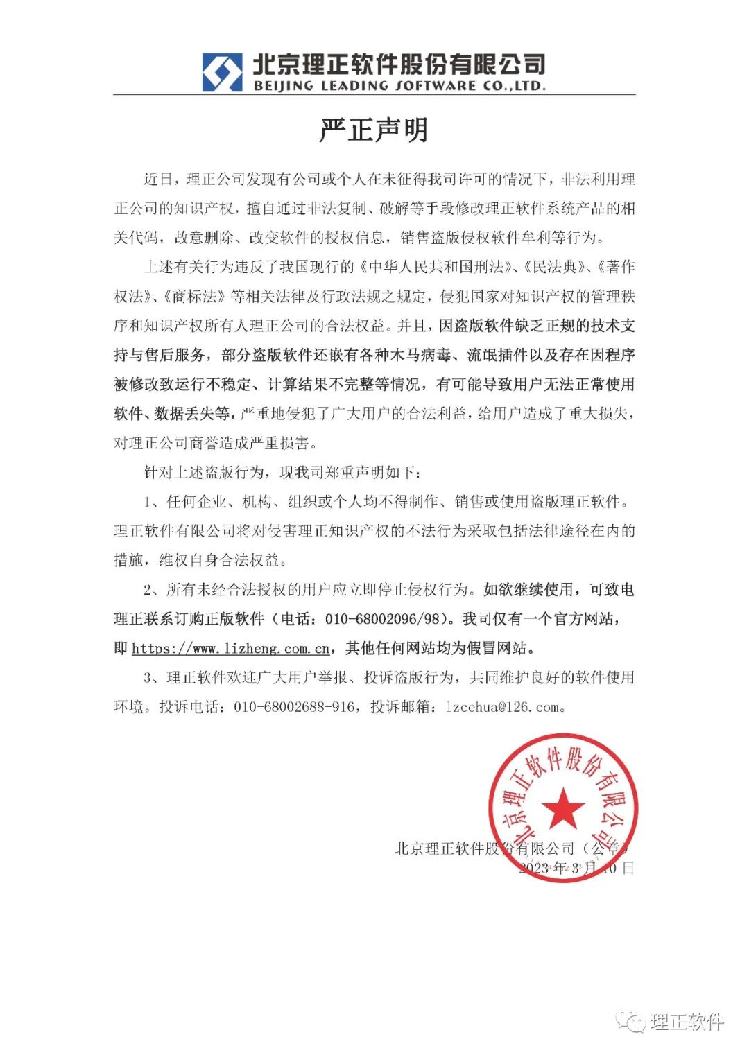 2、所有未经合法授权的用户应立即停止侵权行为。如欲继续使用,可致电理正联系订购正版软件(电话:010-68002096/98)。我司仅有一个官方网站,即https://www.lizheng.com.cn,其他任何网站均为假冒网站。