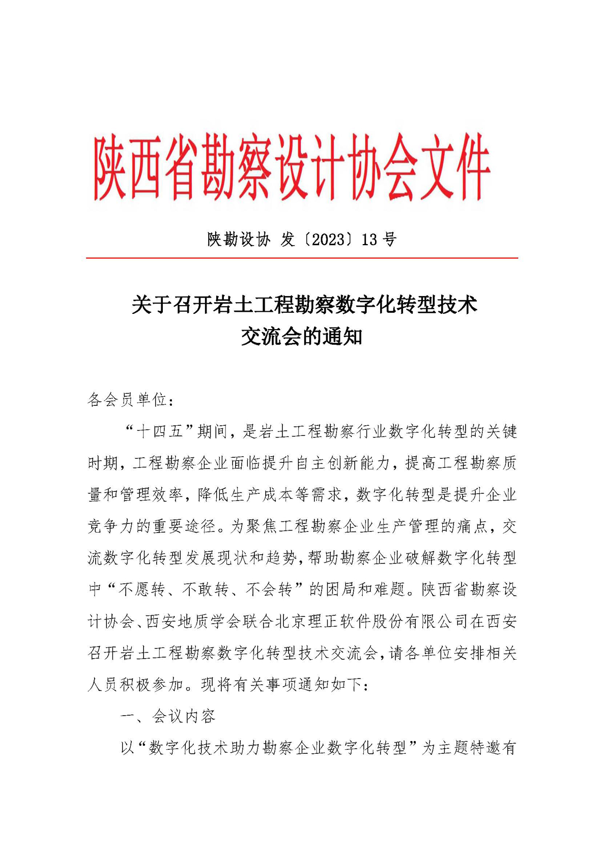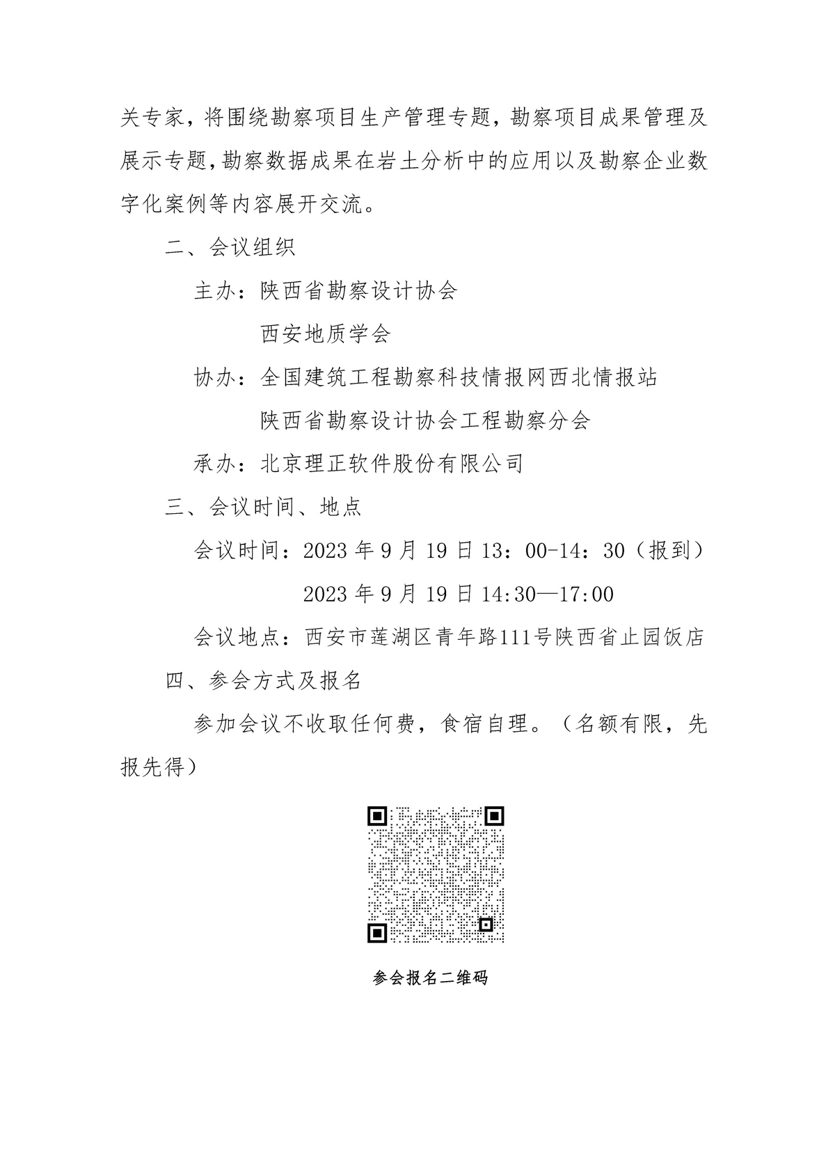 为更深入推进勘察企业数字化转型工作,陕西省勘察设计协会、西安地质学会联合北京理正软件股份有限公司定于2023年9月19日在西安召开“岩土工程勘察数字化转型技术交流会”。