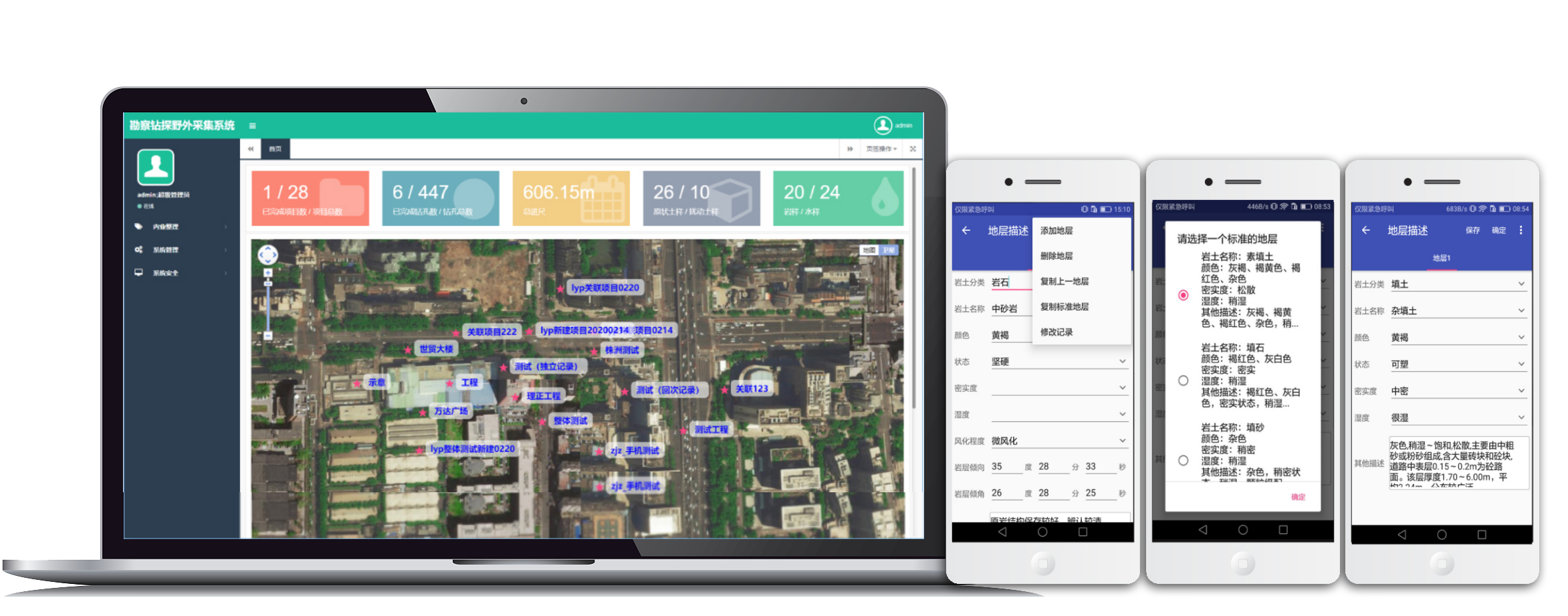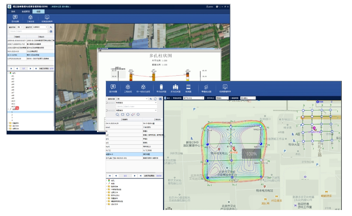 系统完成DBMS的核心功能,集成包含了数据服务器和文件服务器等,提供勘察数据和文件的上传下载服务,采用web管理后台,实现数据共享和多人协作,可支持多人同时访问中心服务器。并将勘察数据与高德网络地图相结合,实现对勘察数据、地质图件、勘察成果等资料的综合管理。包含多种数据查询方式,允许自定义查询条件高级查询,根据用户需求快速提取相关数据和文档资料,并可实时查看工程详细信息、文档,即时生成单孔柱状图、多孔柱状图、剖面图,便于历史资料分析及重复利用。同时提供用户和功能权限管理,保证工程资料的安全使用。勘察软件支持一键提交理正勘察数据到中心服务器,实现与理正勘察软件的无缝连接。