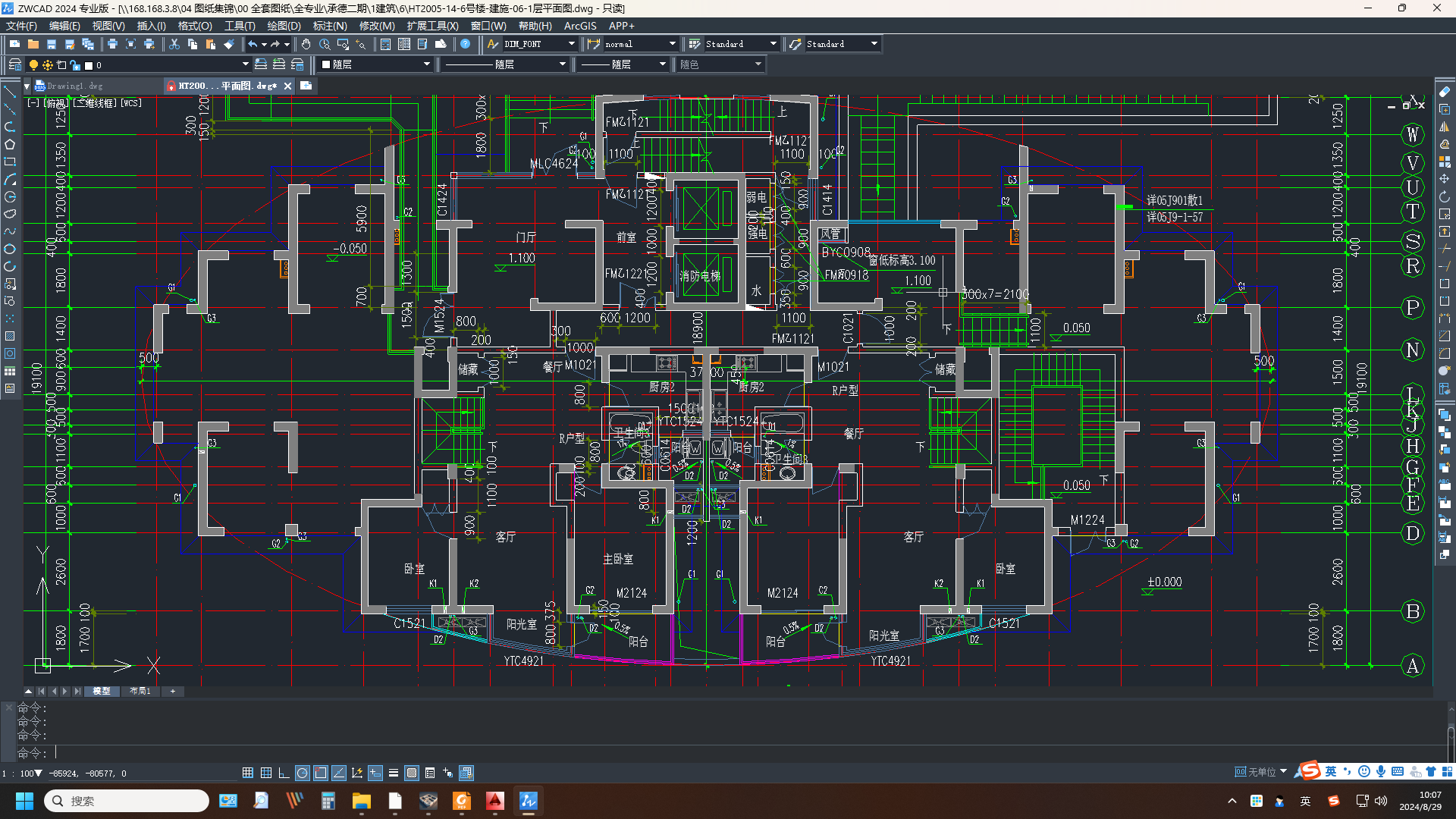 墙线绘制:不同材质的墙放在不同的图层,内、外墙区分开来绘制,增强了图层的管理。