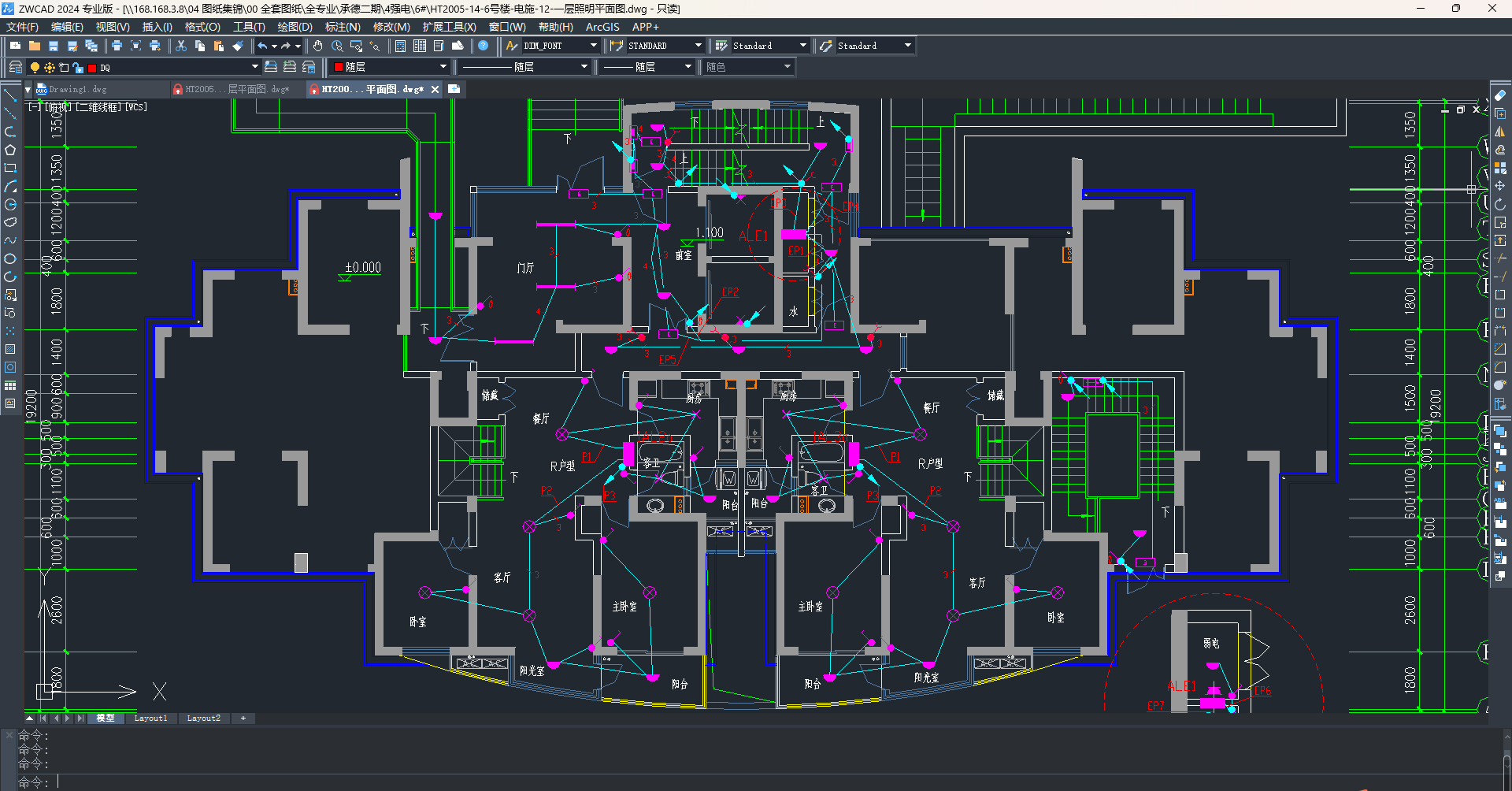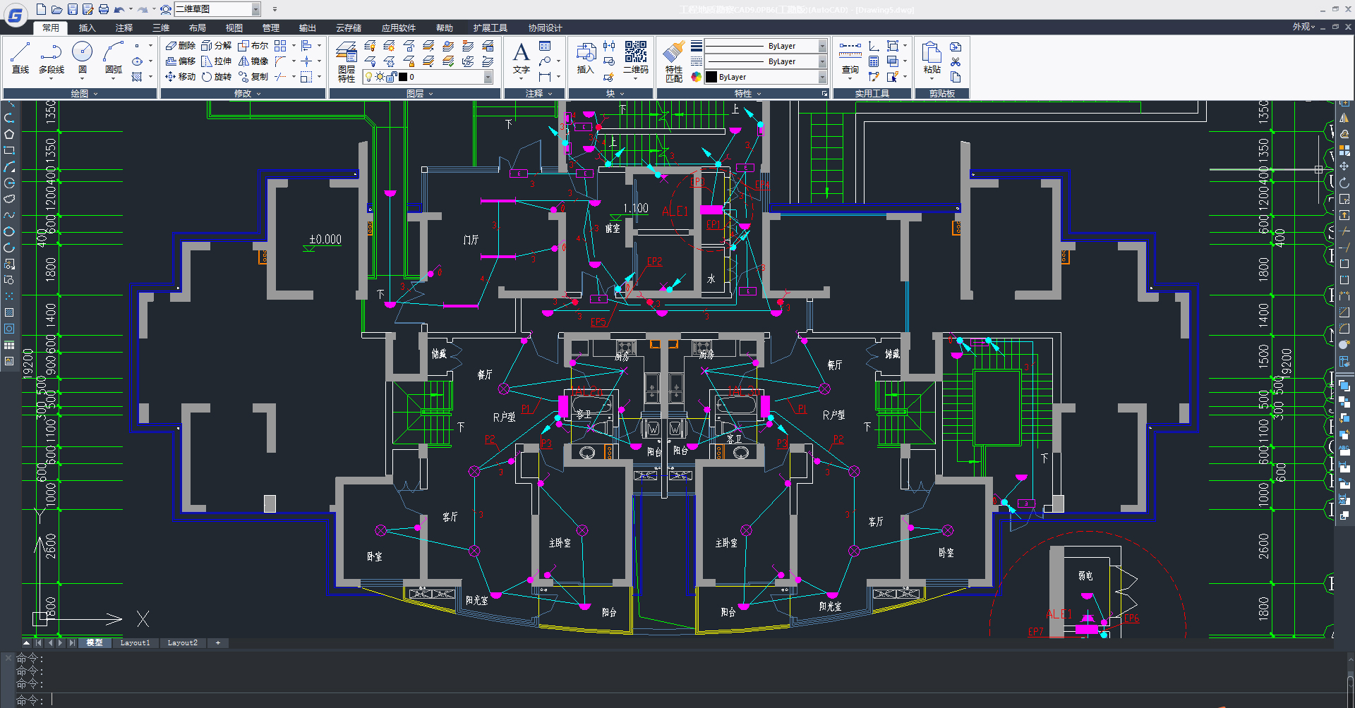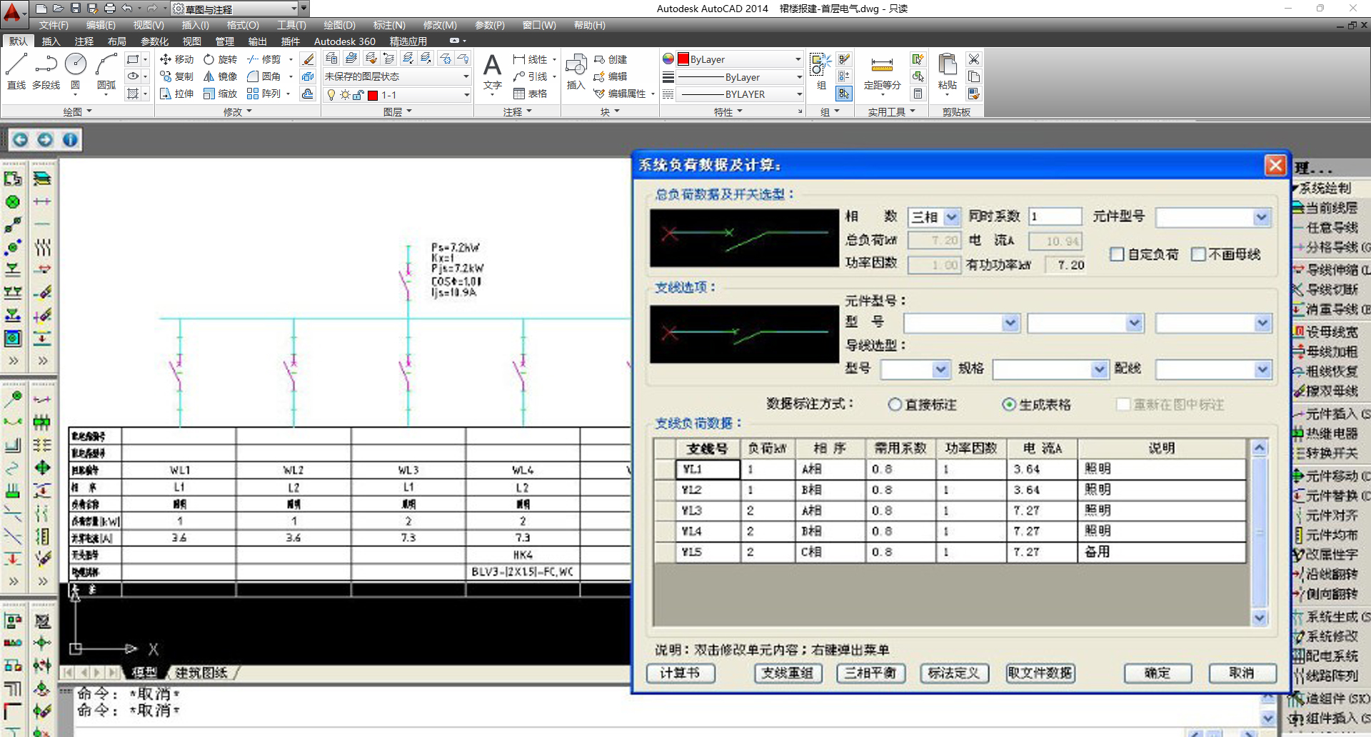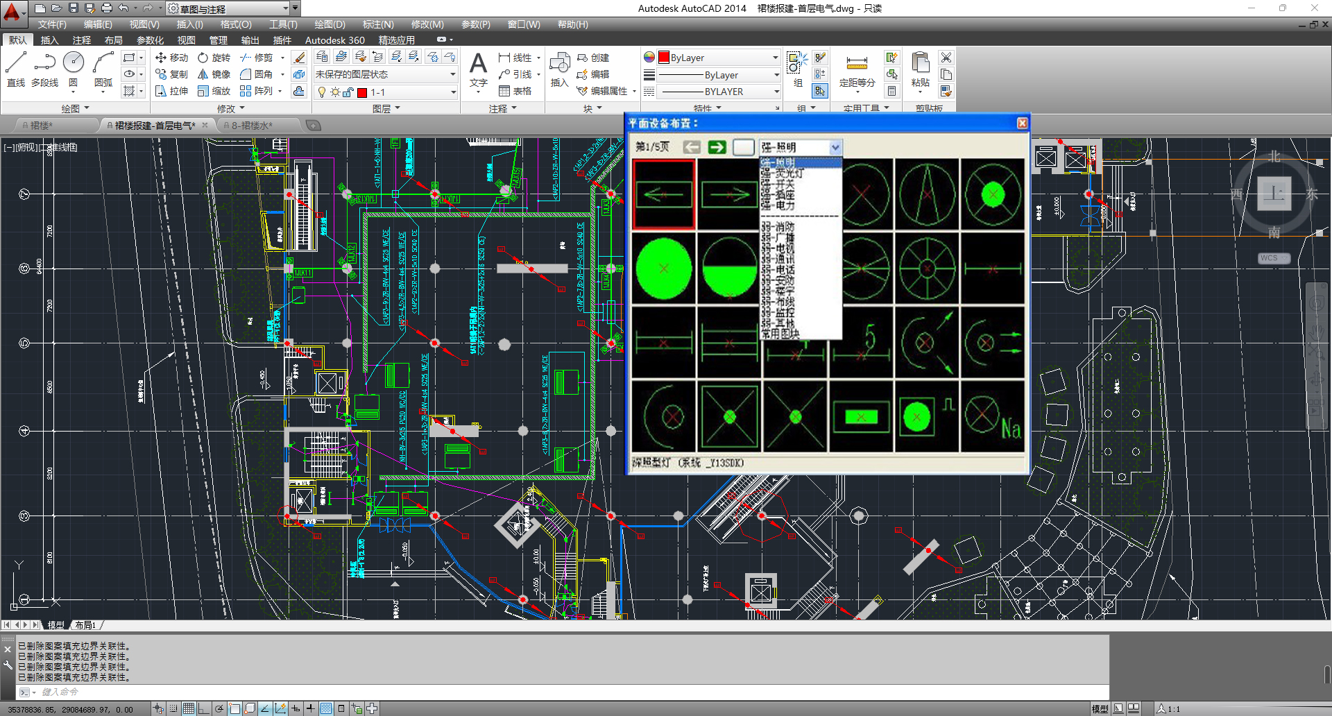 图层开关:很方便地将电气层(或非电气层)关闭或锁定,从而替换图中的建筑部分图元。此功能用于电气图绘制好之后,又要改建筑部分的情况是非常有效的。