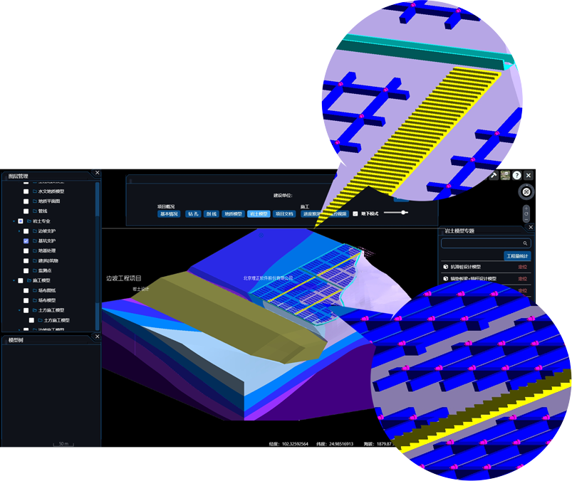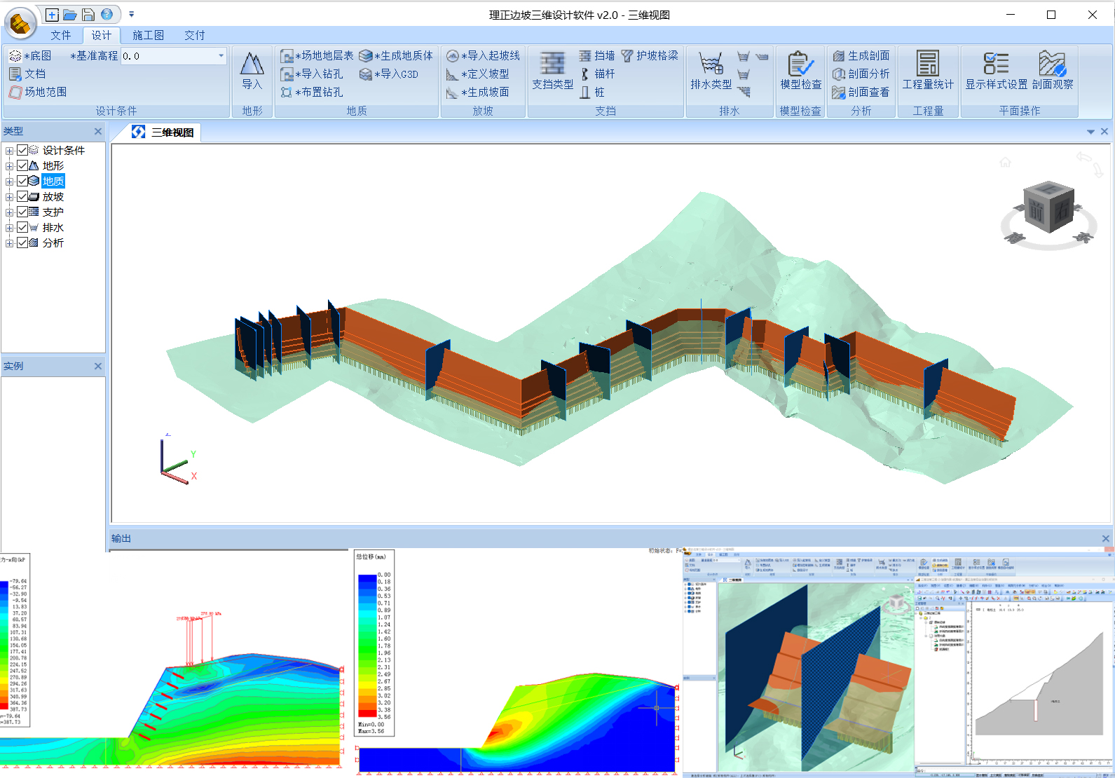 基于自主图形平台与岩土分析内核技术,提供通用造型能力、支撑勘察、岩土专业专业软件精细化设计,多源异构数据集成,模拟岩土材料的非线性、各向异性、时效性等复杂力学行为,对于大型、复杂的岩土工程设计。