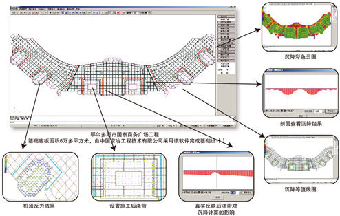 4、考虑不均匀地层及局部地基处理的地基刚度,充分反映不均匀地基对基础结构内力变形的影响;