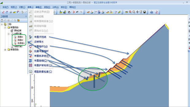 2. ■ 多个支挡方案组合、多种分析方法。在一个平台上进行设计和展示,方便治理方案比选。