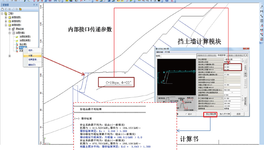 3. ■ 挡墙、抗滑桩、护坡格梁等构件设计,可以直接从综合治理整体模型中提取相关尺寸信息和地层参数,减少重复录入。