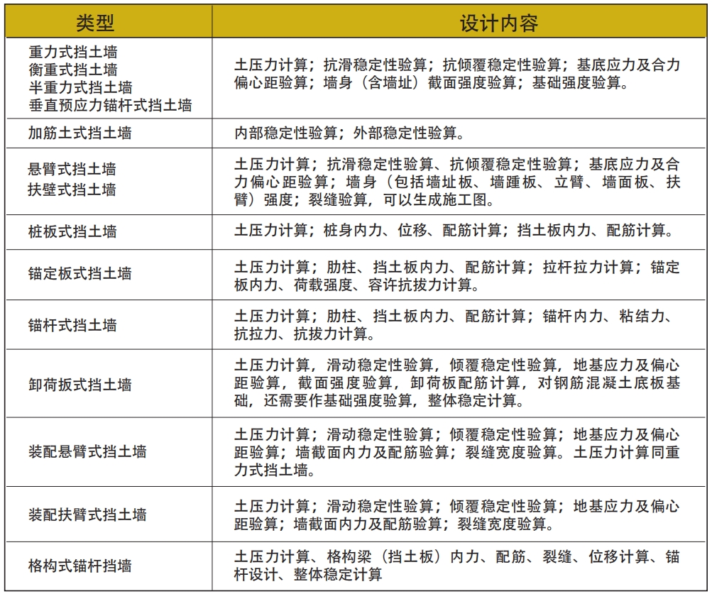 涵盖多种挡土墙类型