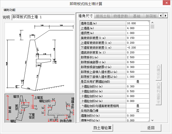 ★提供在挡土墙上布置附加外力的功能。