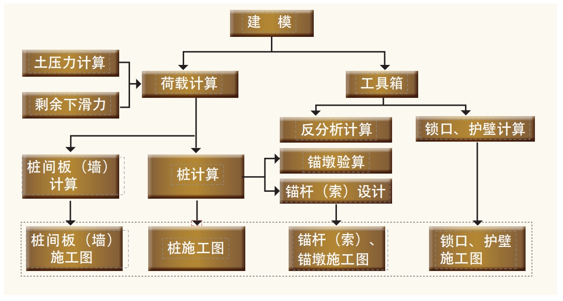 本软件集锚固桩支护的建模、计算、配筋、选筋、施工图于一体: