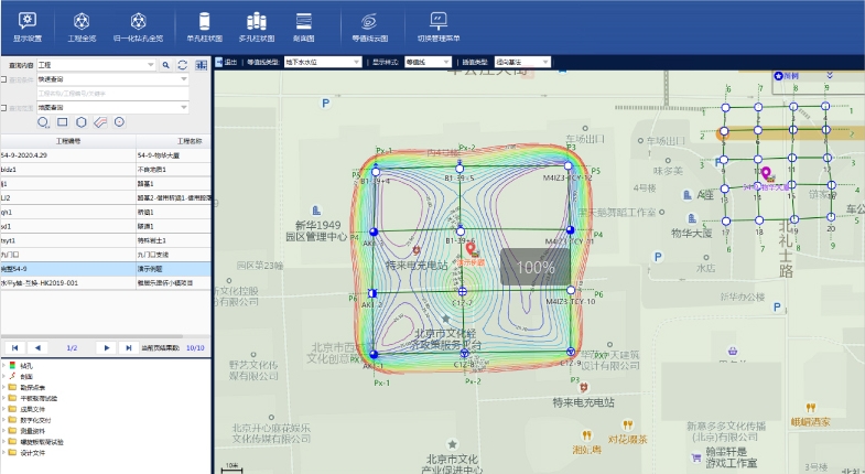 1. 系统采用数据层、平台层、应用层三层分离的设计体系,用户可结合高德网络地图,形象的展示工程位置和钻孔分布,同时还可不结合地图,仅对勘察数据与图件进行管理。