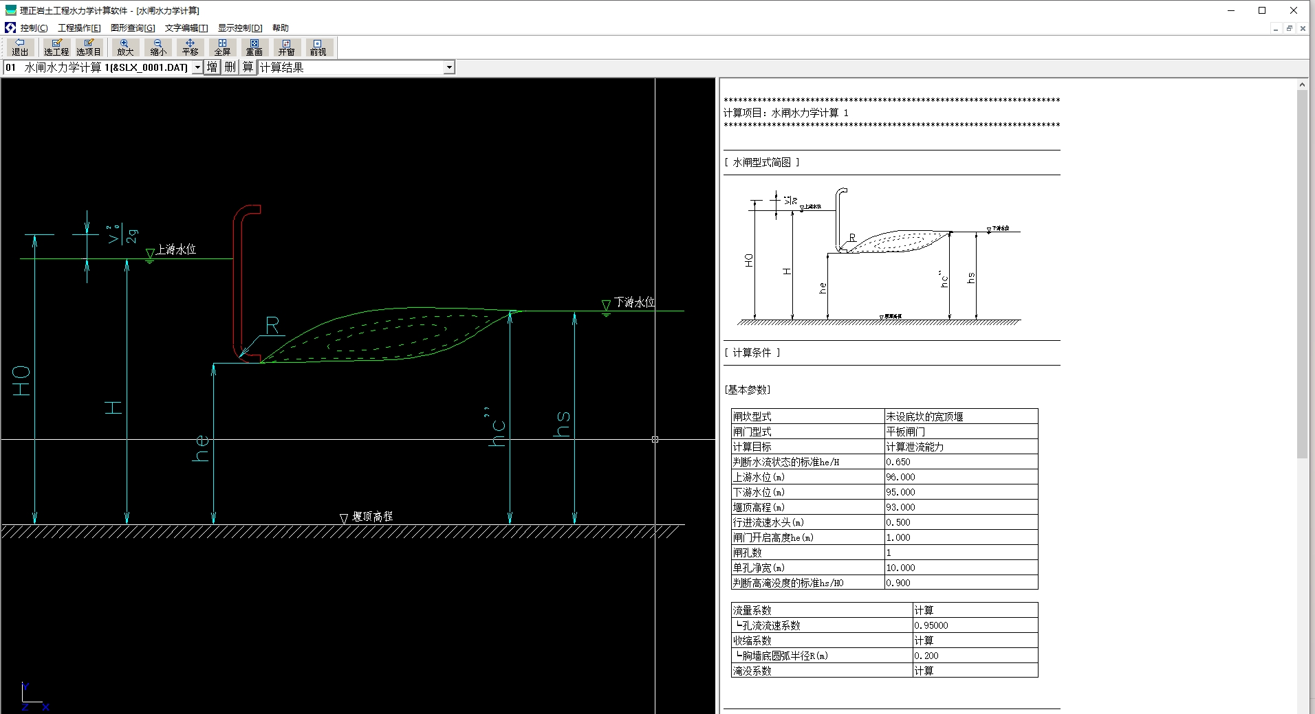 水闸设计模块:适用于平底闸、宽顶堰闸、WES型实用堰闸。
