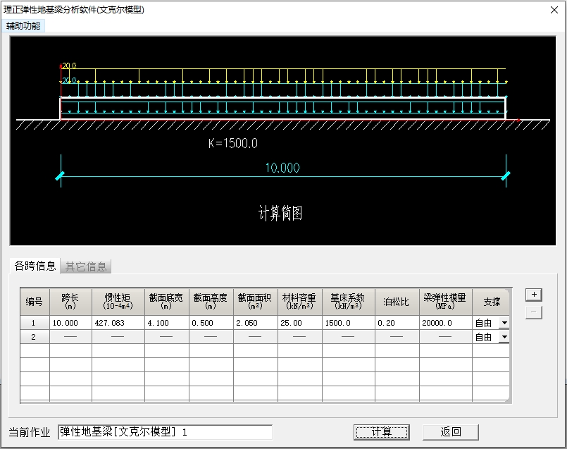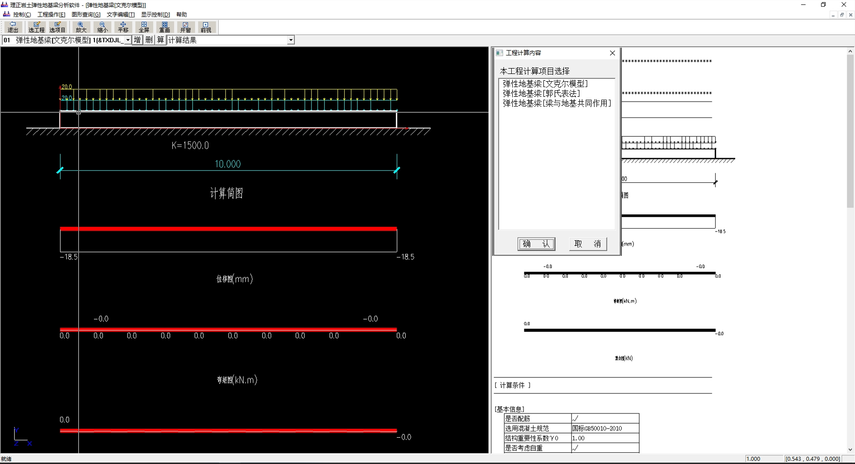 理正弹性地基梁分析软件作为梁的分析程序适用于工民建、水利、水电等各个行业。其中文克尔法适用于文克尔地基上的梁,可考虑不同的支撑条件:固定、铰支和自由;可考虑集中力和分布力的共同作用;可计算不同支撑条件、不同荷载组合情况下的单跨和多跨地基梁;郭氏表法可计算单跨梁上的各种荷载,包括边荷载,但查表有一定的限制范围。两种方法都给出图形结果、文字结果及图文并茂的计算书。