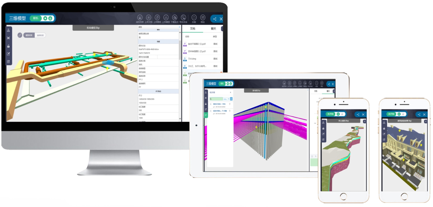 BIM模型协作产品是面向设计企业、设计团队、施工单位、业主或相关配合单位,基于BIM模型对象,进行跨组织、远程、异地、随时沟通协作的一款专用的工具类产品。该产品可远程实时进行三维成果展示与互动,可用于招投标、方案评审、工作汇报协商讨论等工程环节,大大提高工作效率及沟通效果。该产品不需要安装专业软件,即可以通过浏览器或者手机进行三维模型的在线浏览;可以针对三维模型进行在线自由剖切、过滤筛选、查看构件属性信息、意见批注和文字评论,进行互动交流、问题追踪,并可以将交流结果导出形成图文并茂的纪要进行留存。作为一款工具类产品,该产品既可以单独应用,也可以与其他应用产品配合使用。