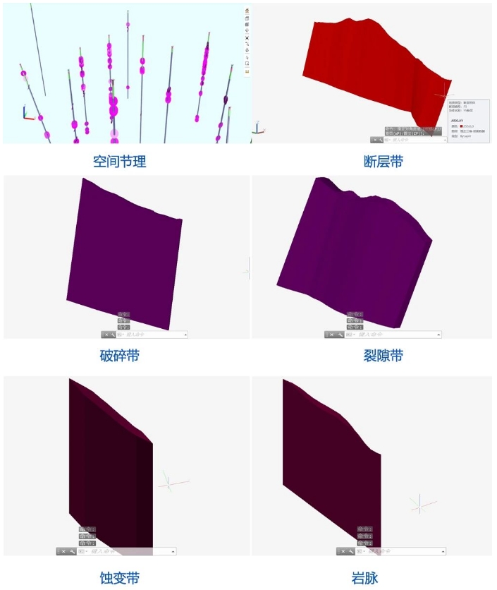 6种工程地质建模要素:空间节理/综合节理、断层带、破碎带、裂隙带、蚀变带、岩脉