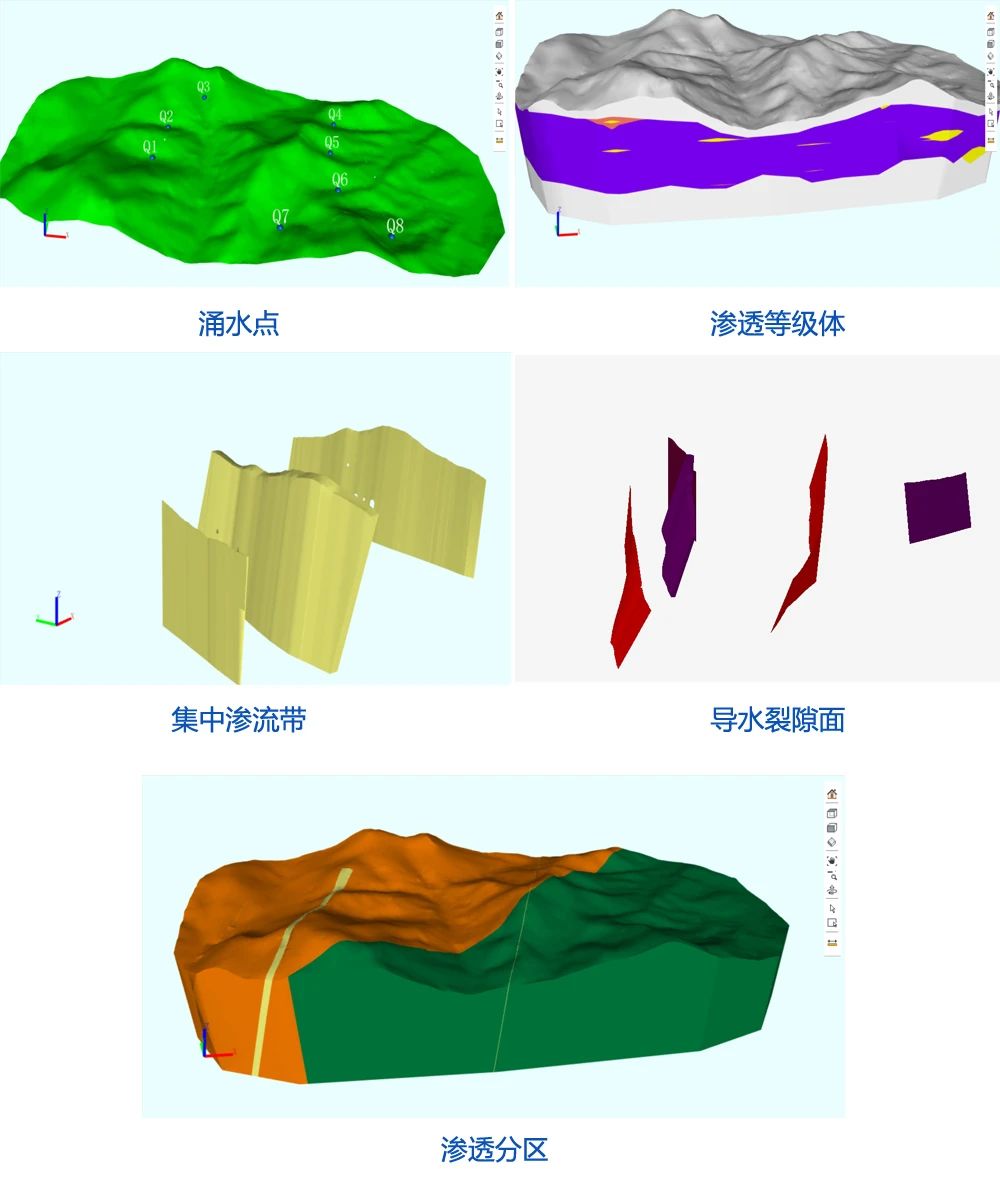 5种水文地质建模要素:涌水点、渗透等级、集中渗流带、导水裂隙面、渗透分区