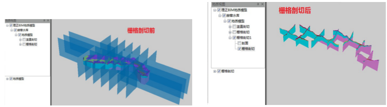5. 对地层进行水平、竖向、栅格剖切、挖洞挖坑操作。