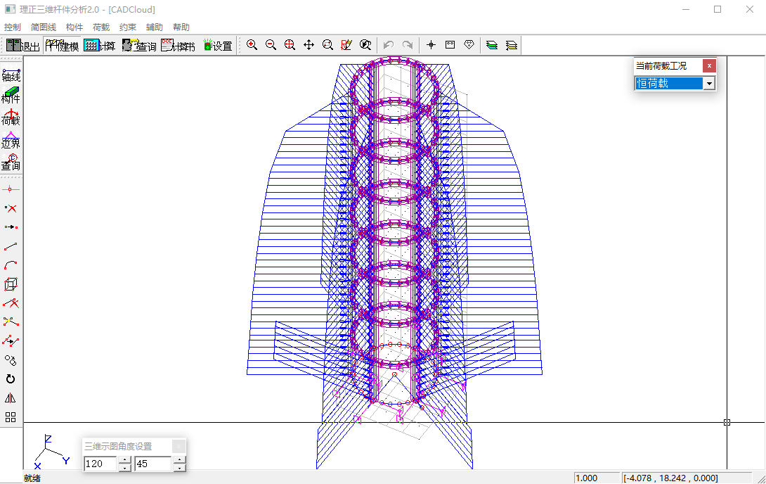 支持各种形式杆系结构:空间刚架、桁架、框架、排架