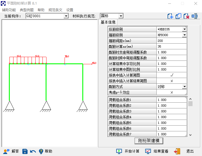 软件适用于各种形式的平面刚架、桁架、框架、排架、拱、隧道、楼梯等设计工作,能完成上述结构的弯矩、剪力、轴力、支反力、配筋及位移的计算。可布置任意数量的直线或弧线构件;可设置链杆、不动铰支座,固定端及弹性支座(模拟基础沉降),构件之间可以是铰接或刚性连接;荷载作用于平面内,类型包括节点力、集中力、竖向、水平及垂直于杆件轴线方向的均布、分布荷载,可设置多工况进行组合计算。