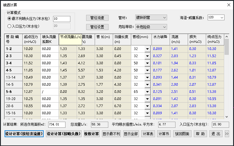 2、完善【喷洒计算】功能,修正了带立管的喷洒管道的计算问题;