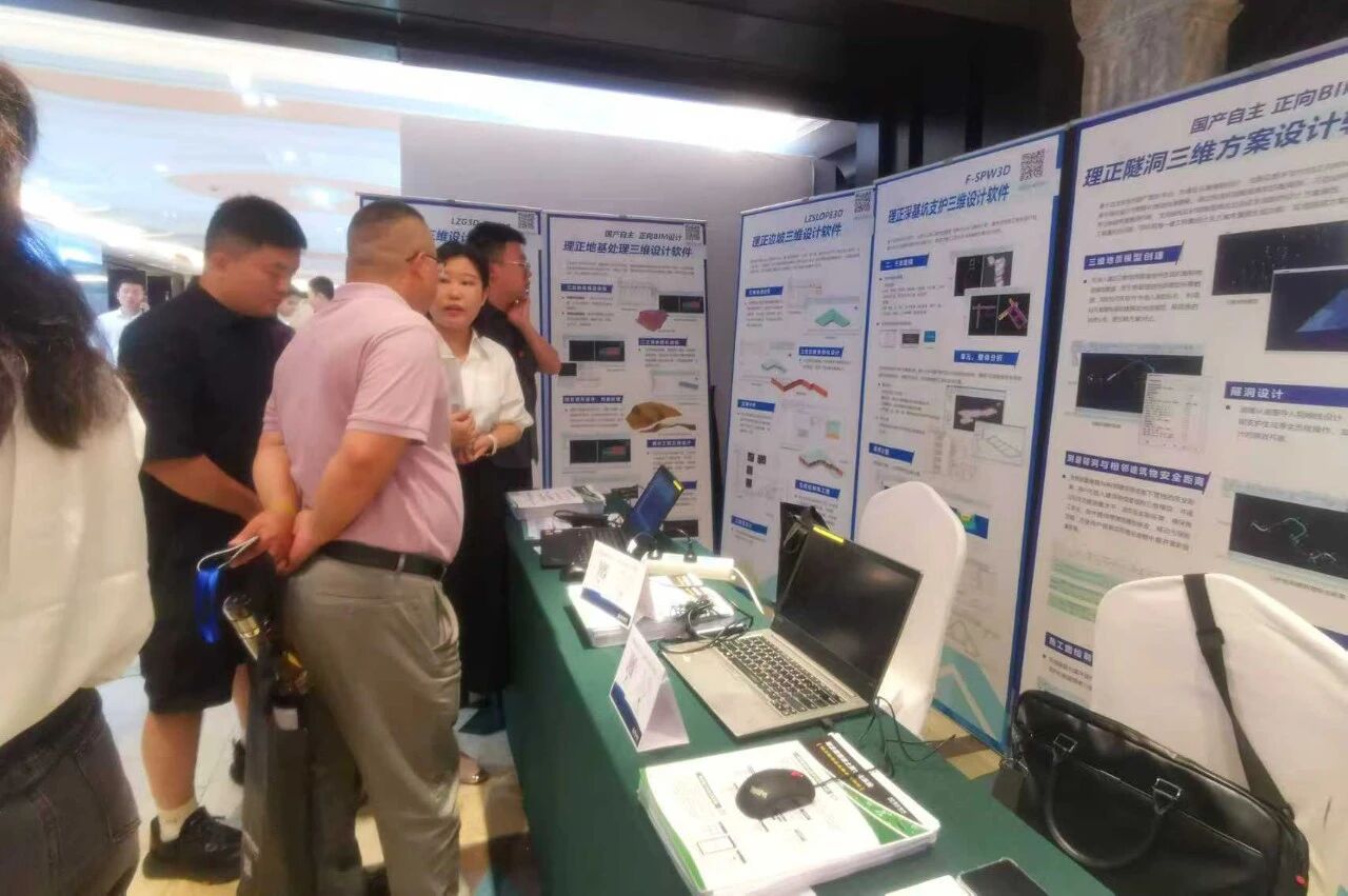 在会议期间,北京理正亮相了多款岩土三维设计专业应用软件以及数字化系统,如理正勘察岩土数字化系统、理正深基坑支护三维设计软件、理正边坡三维设计软件、理正地基处理三维设计软件、理正复杂填挖三维设计软件、理正三维桩基方案优化软件、理正隧洞三维方案设计软件等。作为本次会议受邀的岩土工程行业数字化专业化应用服务厂商,理正软件的展台现场也迎来了众多设计企业与生态合作伙伴的关注与探讨。